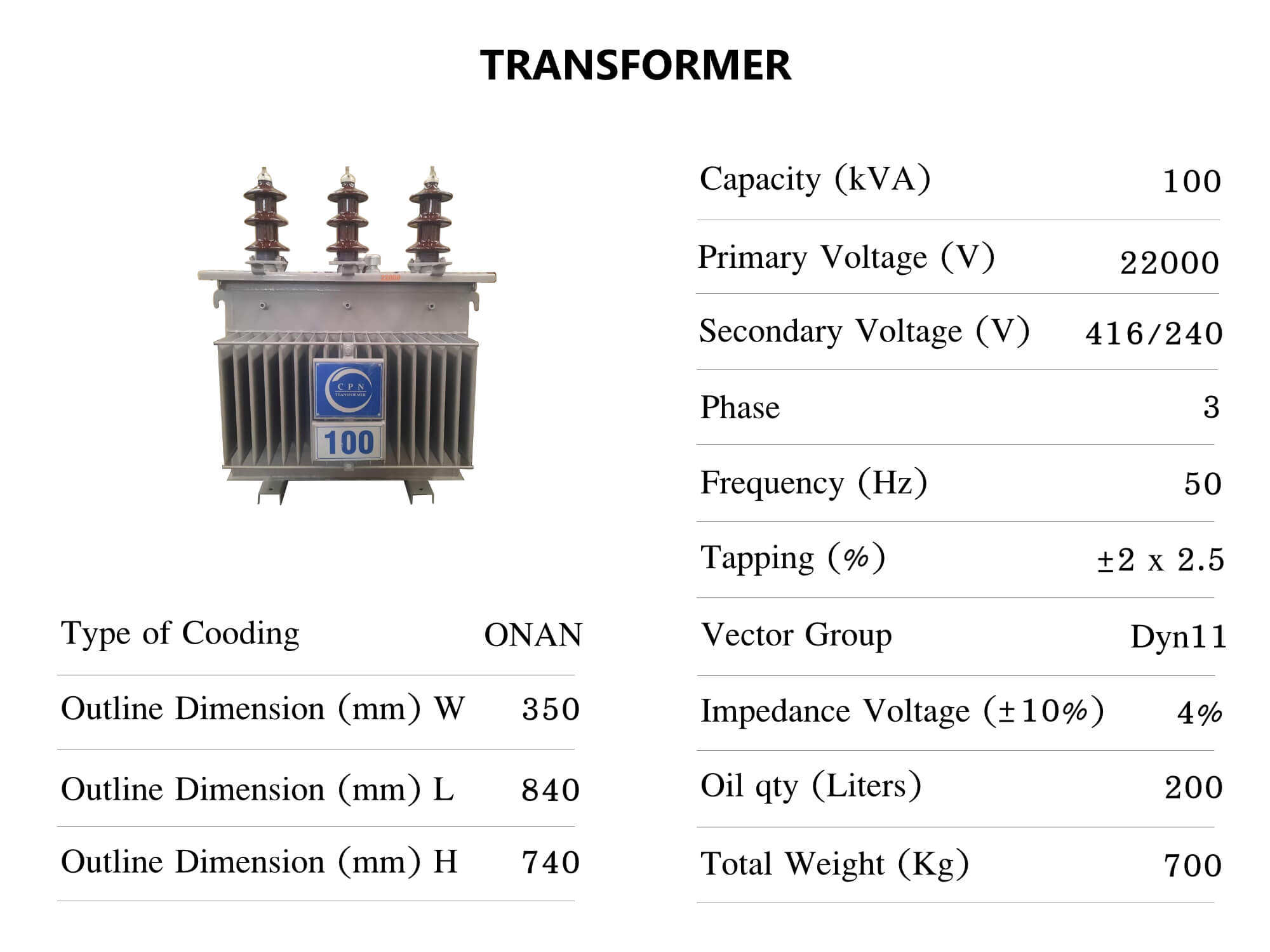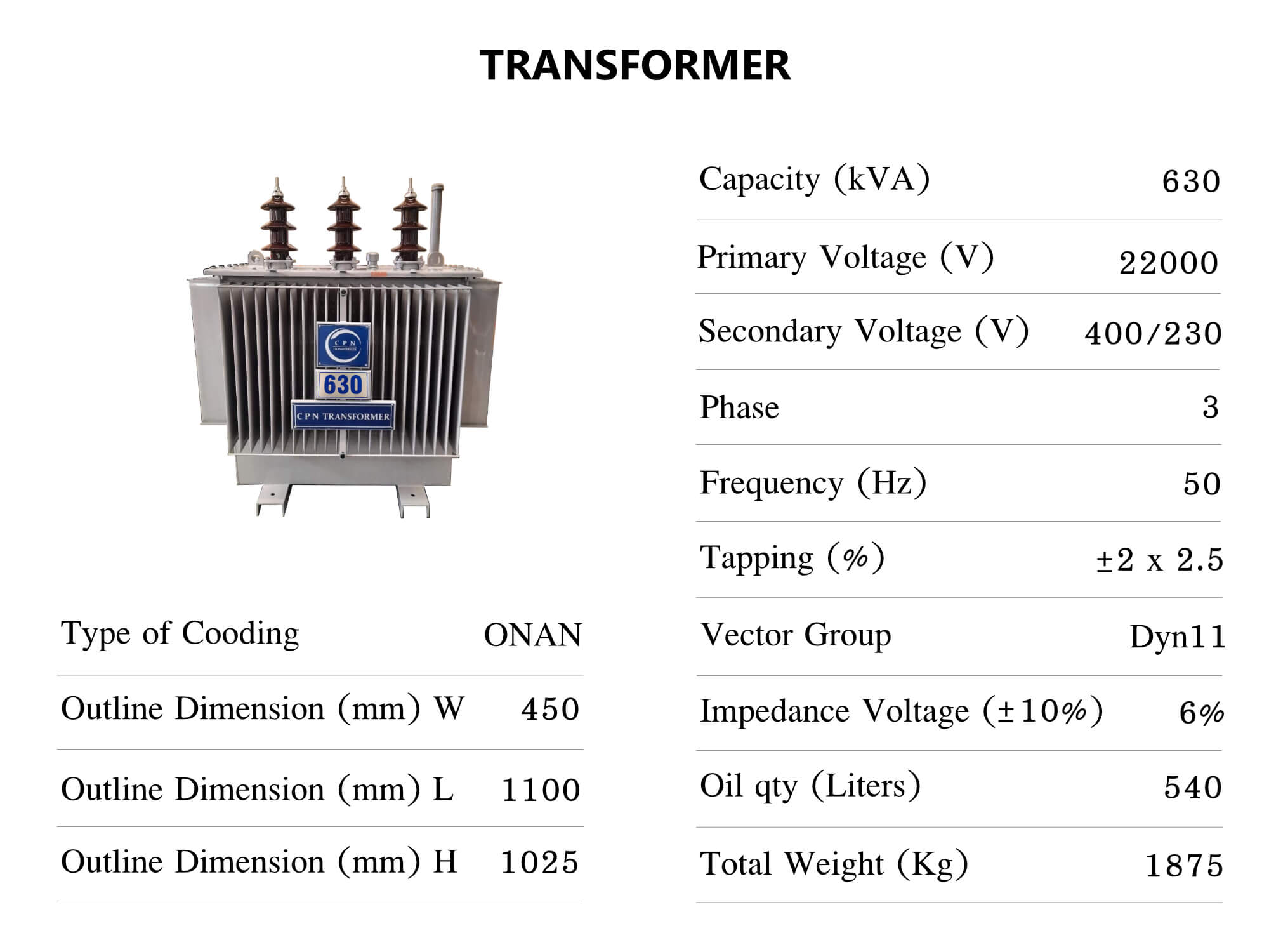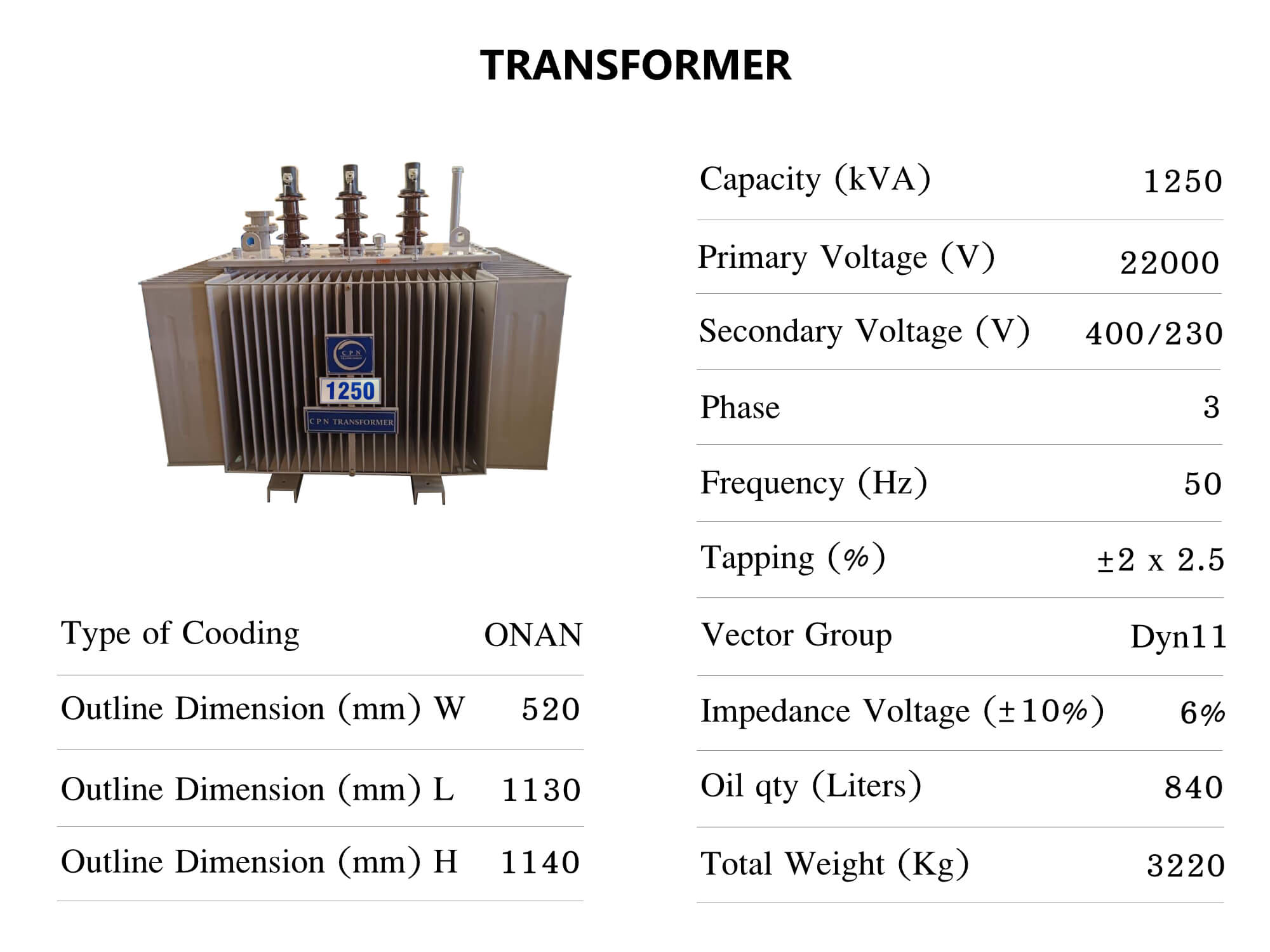 ผลิตหม้อแปลงไฟฟ้าขนาดตั้งแต่ 1 – 5000 kVA ขนาด 1 และ 3 PHASE รับผลิตตามความต้องการ ภายใต้การรับของการไฟฟ้าฝ่ายผลิตแห่งประเทศไทย การไฟฟ้านครหลวง และ การไฟฟ้าส่วนภูมิภาค นอกจากนี้ผลิตภัณฑ์ของบริษัท ฯ บางส่วนยังมีการส่งไปจำหน่ายในต่างประเทศ